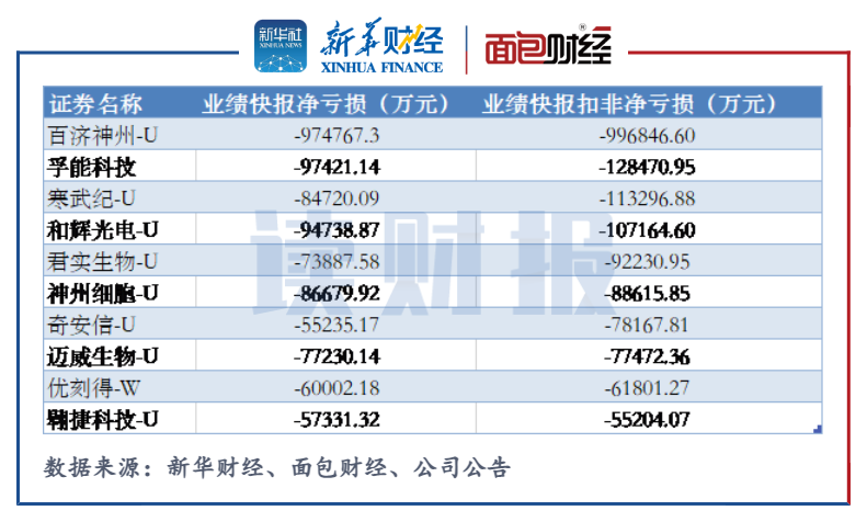 图1:已披露2021年业绩快报的科创板公司“亏损”前十名
