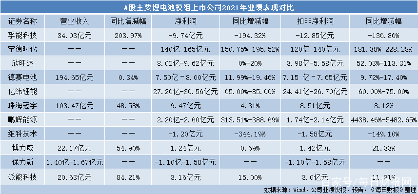 2021年可谓是“新能源之年”,相关资产在A股市场备受追捧。此间,锂电池是新能源的代表资产,“宁王”宁德时代市值破万亿,成为公募基金第二大重仓股。近期,锂电池上市公司披露2021年业绩预告,大多数公司业绩获得正增长,也有少部分公司陷入亏损。
