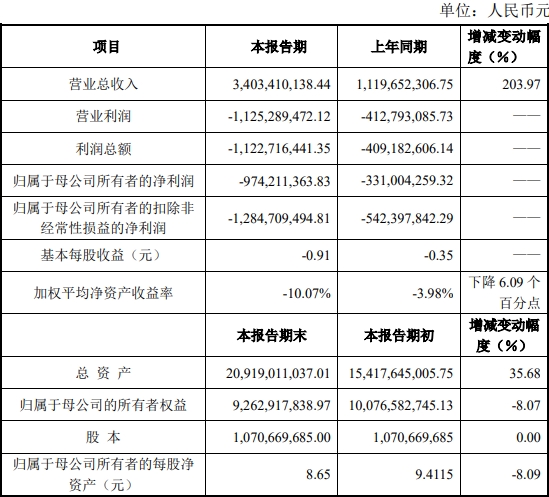 孚能科技2月28日披露的2021年度业绩快报显示,公司2021年实现营业总收入34.03亿元,同比增长203.97%;归属于母公司所有者的净利润为-9.74亿元,上年同期为-3.31亿元;归属于母公司所有者的扣非净利润为-12.85亿元,上年同期为-5.42亿元;基本每股收益为-0.91元,上年同期为-0.35元;加权平均净资产收益率为-10.07%,比上年同期下降6.09个百分点。