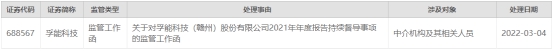 上交所网站于3月4日公布对孚能科技(688567.SH)监管工作函,处理事由为关于对孚能科技(赣州)股份有限公司2021年年度报告持续督导事项的监管工作函,涉及对象为中介机构及其相关人员。