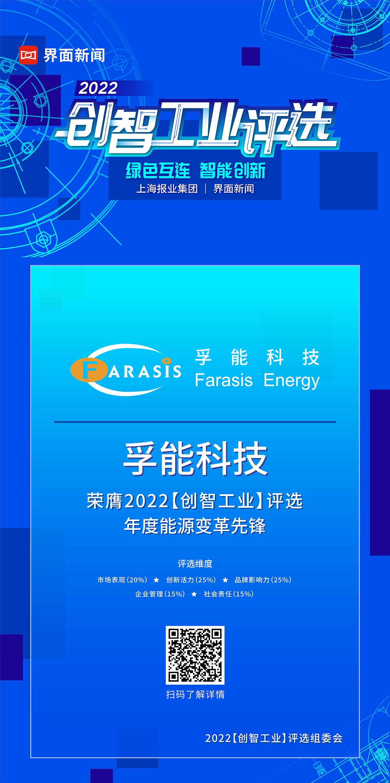 10月24日,由上海报业集团|界面新闻发起的2022【创智工业】评选获奖名单正式公布。此次评选吸引了百余家工业企业共同参与,孚能科技凭借其在市场表现、创新活力、品牌影响力、企业管理、社会责任方面的亮眼表现,荣获年度能源变革先锋。