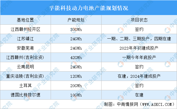 为满足市场和客户订单需求,大手笔扩充产能。据不完全统计,目前,孚能科技在全球规划建设了8大生产基地,其中江西赣州经开区产能30GWh、江苏镇江产能24GWh、安徽芜湖产能24GWh、江西赣州(吉利合资)产能42GWh、云南昆明产能24GWh、重庆涪陵(吉利合资)产能12GWh、土耳其产能20GWh、德国比特菲尔德产能10GWh。