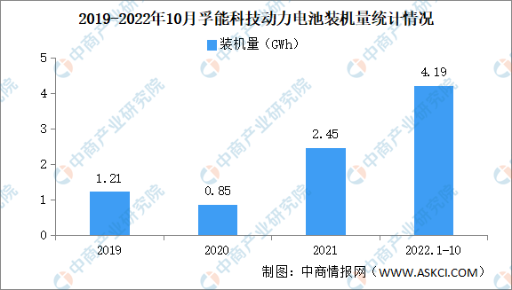 孚能科技主要从事新能源车用锂离子动力电池及整车电池系统、储能系统的研发、生产和销售,聚焦三元高镍动力电池的电芯、模组和电池包。近年来,孚能科技动力电池装机量呈现提升的趋势。数据显示,2022年1-10月,孚能科技动力电池装车量为4.19GWh,同比增长153.9%,市场占比1.87%,位居第九位。