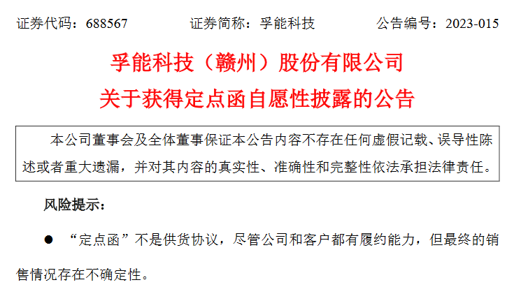 孚能科技在公告中提示,钠离子电池技术是孚能新投产的产品技术路线,公司虽已将赣州工厂部分三元电池产能改造为钠电池产能,具备钠离子电池产品量产条件,但后续在进一步满足客户要求或产业化过程中仍然存在不及预期的风险。