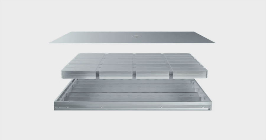 另外,电芯两侧的液冷板也可作为结构件起到结构支撑作用,电池包纵梁结构可以减少,实现轻量化,提升电池包的成组率。