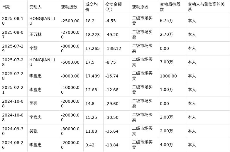 上交所公开信息显示,8月18日,孚能科技核心技术人员HONGJIAN LIU在二级市场买卖公司股票,减持股数0.25万股,成交均价18.20元,变动金额4.55万元,变动后持股数为6.75万股。