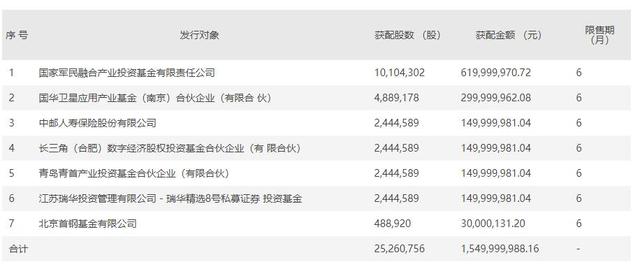 本次发行对象确定为7家,均以现金参与认购,最终确定的发行对象中包含了多家明星产业基金,可见其实力备受机构认可。最终,7家获配股数及获配金额具体情况如下: