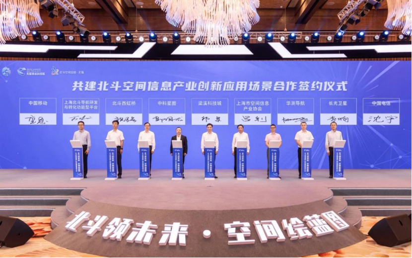 在大会现场举行集中签约仪式,梁溪科技城会同北斗西虹桥基地,联合中科星图等一批龙头企业,签约共建北斗空间信息产业创新应用场景。中科星图副总裁、中科星图智慧科技有限公司高级副总裁郭国龙说:“从技术角度来说,我们把北斗导航定位和遥感卫星的高精度对地观测进行融合,这样我们就可面向千行百业进行赋能,包括自然资源、水利、生态环境、应急管理、智慧城市,以及现在热度较高的低空经济等。”