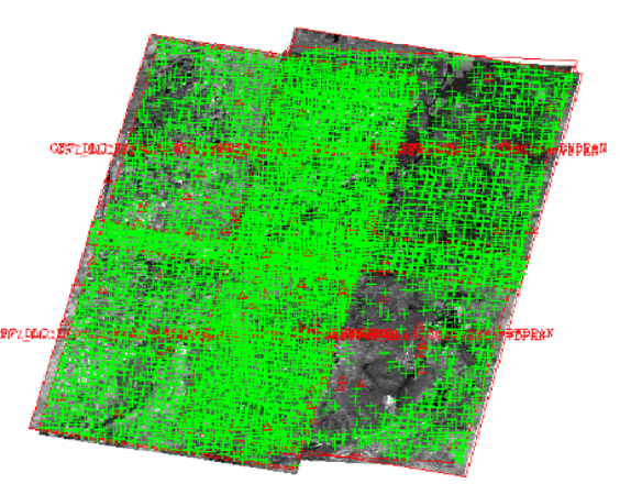 针对多源遥感影像,结合多种互补特征匹配方法,克服影像的内部畸变、尺度不同、成像差异等干扰因素,增加匹配点的数量,同时结合多种方式剔除粗差点,确保匹配点的精度,实现大区域多源遥感影像全自动亚像素级匹配。