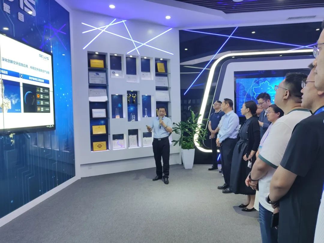 研学团队一行来到中科星图,首先参观GEOVIS数字地球体验中心,了解中科星图的企业概况、产业定位、发展历程和未来规划。中科星图作为国内空天信息、数字地球行业领军企业,将新一代信息技术、地理信息技术与航空航天产业深度融合,自主研发形成了GEOVIS数字地球产品体系,目前产品已广泛覆盖特种领域、政府、企业及大众用户。