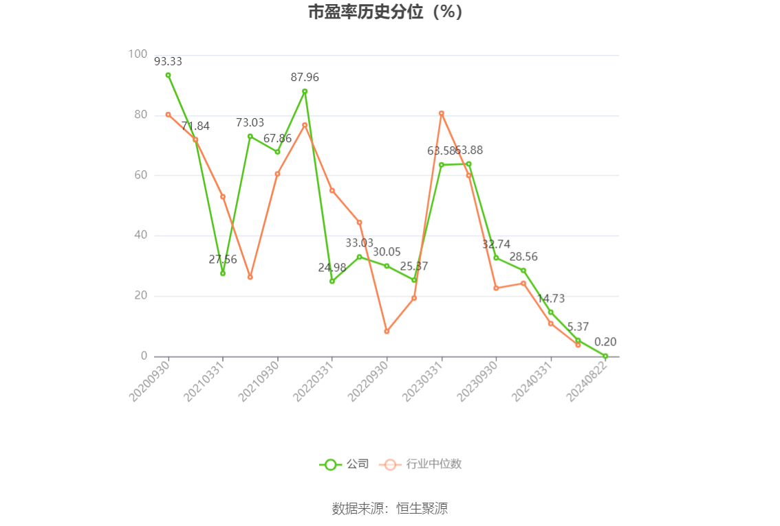 市盈率为负时,不显示当期分位数,会导致折线图中断。