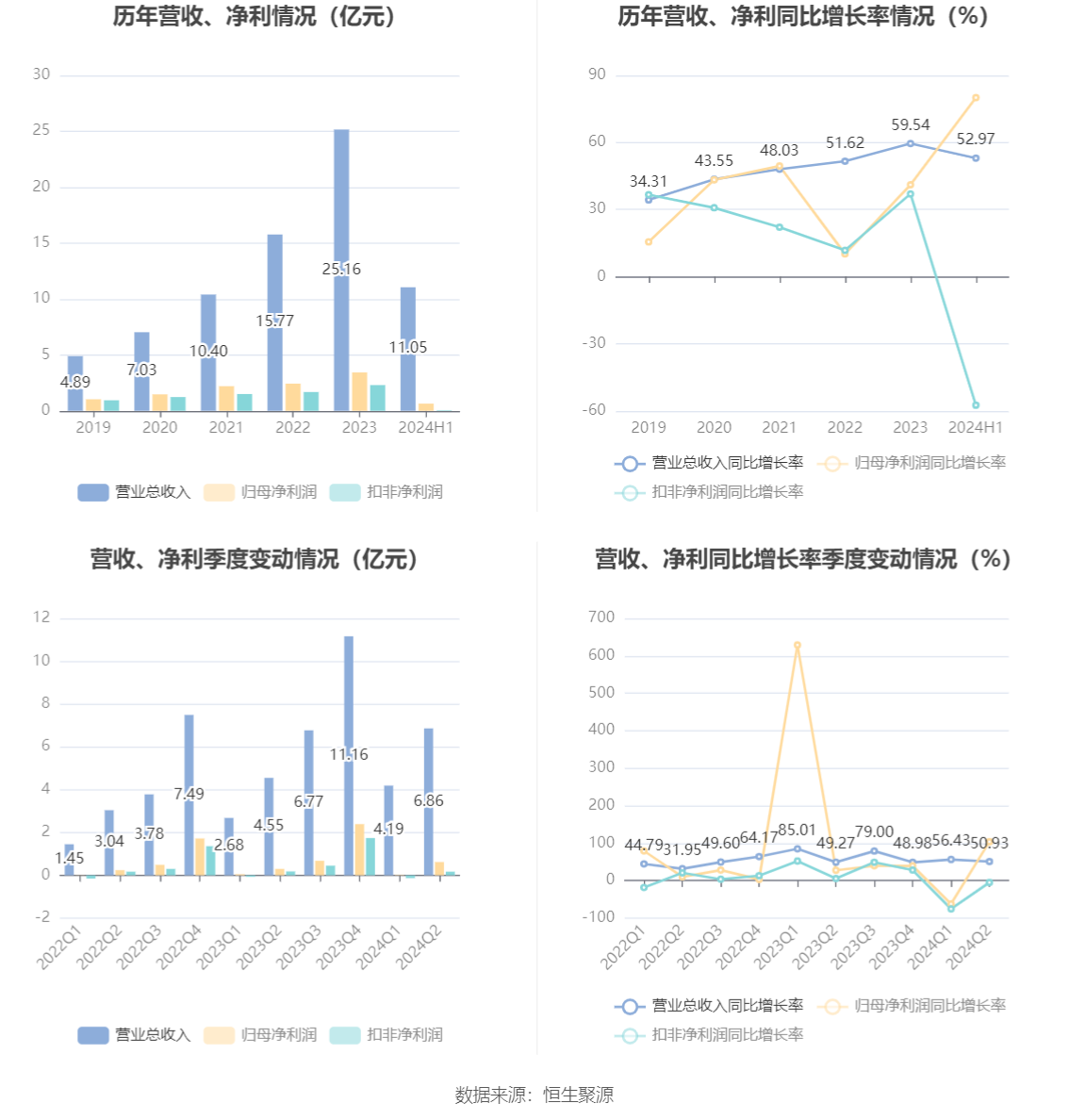 根据半年报,公司第二季度实现营业总收入6.86亿元,同比增长50.93%,环比增长63.89%;归母净利润6165.17万元,同比增长104.13%,环比增长3078.05%;扣非净利润1746.03万元,同比下降4.72%,环比增长236.75%。