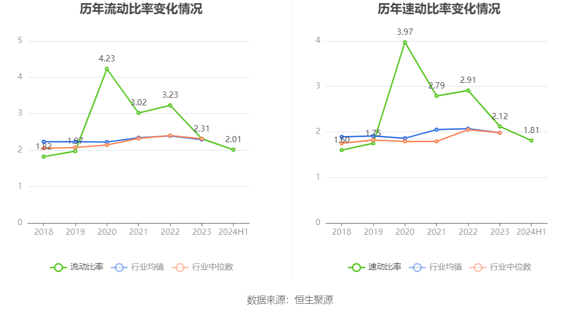 2024年上半年,公司流动比率为2.01,速动比率为1.81。