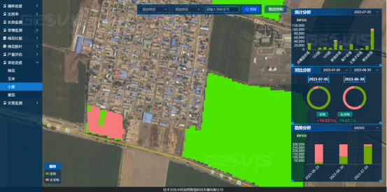星图智慧承接的现代农业产业园智慧应用“现代农业产业园”项目,监测大豆玉米带状复合种植面积达134000亩。项目不仅包括大豆生长状态监测,还包括产业园资源管理、生产与消费预警、智慧种植等方面,实现全流程的数字化、智能化,集大豆产业数据采集汇聚、管理分析、对接服务等功能于一体,打造全产业链联合体,形成以创新为主导、企业为主体、基地为依托、产学研相结合的乡村产业融合发展体系,努力打造乡村振兴、产业兴旺的齐鲁样板。