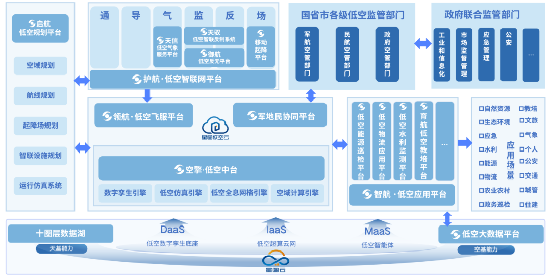 公司基于空天信息多圈层数据供给能力,以星图超算云网(IaaS)、低空数字孪生底座(DaaS)、低空智能体(MaaS)等设施为基础,依托G-DGGS与GeoSOT空域网格剖分技术,整合通信、导航、监视、气象、反制、起降场等低空基础设施运行数据,打造“低空一朵云”,提供低空数据全要素支撑、低空全息网格计算、低空规划和运行全流程仿真和实时管控,为国省市各级低空管理部门、政府联合监管部门、各类空飞行服务用户,提供低空飞行管理、安全监管联动、政府联合监管和低空用户服务等全方位解决方案,为低空经济高质量发展保驾护航。