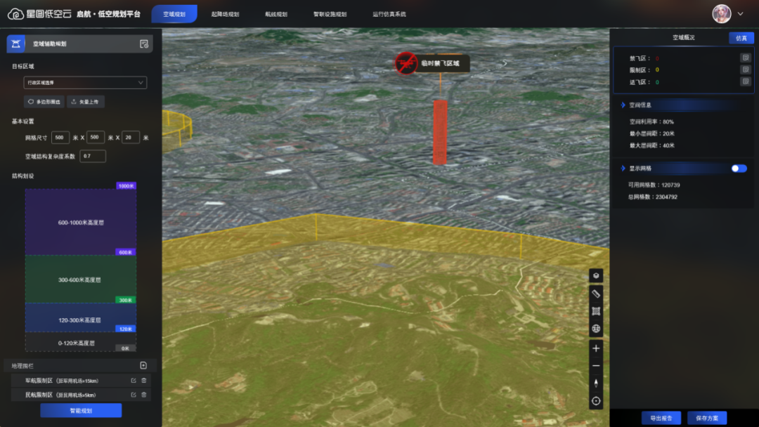 “想做低空,却不知从何管起”,这是多数城市面临的首要难题。中科星图将“低空规划”作为五位一体体系的起点,并在会上正式推出启航?低空规划平台V1.1版本,以“顶层设计+仿真验证”为核心,解决“低空建设的第一步该怎么走”的问题。从低空安全角度来看,这也是飞行安全的第一步,通过整合低空环境全量要素支撑空域规划运行。