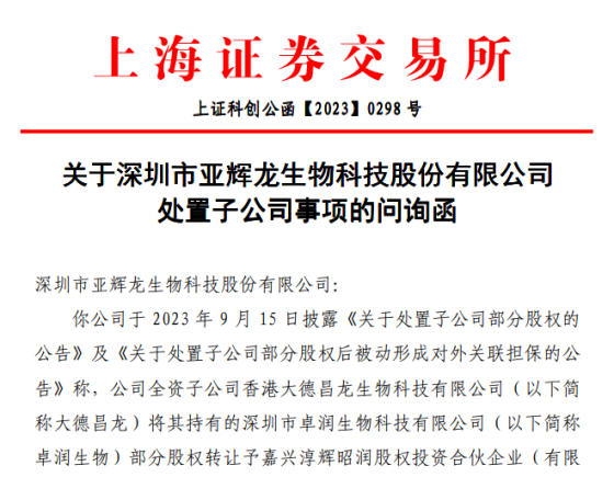 近日,亚辉龙公告称,因处置子公司卓润生物的股权,公司收到上交所发出的问询函,要求对卓润生物的控制权状态、卓润生物是否有足够的履约能力以及股权转让价格是否合理、公允等问题作出说明。