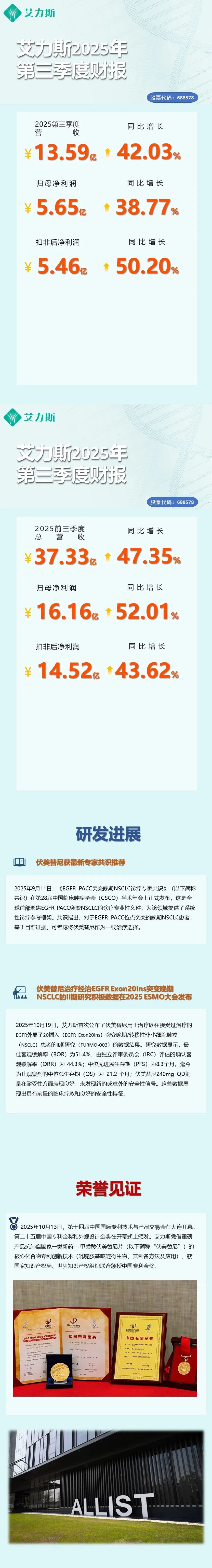 上海艾力斯医药科技股份有限公司成立于2004年3月,是一家以全球医药市场需求为导向,专注于肿瘤治疗领域,集新药研发、生产和商业化为一体的创新型制药企业。艾力斯医药以科技关爱生命为发展理念,以开发首创药物和同类最佳药物为首要目标。历经20多年坚持不懈的努力,艾力斯已经成功自主研发,获批多款创新药,具备持续创制具有自主产权的、疗效确切的抗肿瘤新药之综合实力。2020年12月2日,上海艾力斯医药科技股份有限公司正式在上海证券交易所科创板挂牌上市(股票代码:688578)。