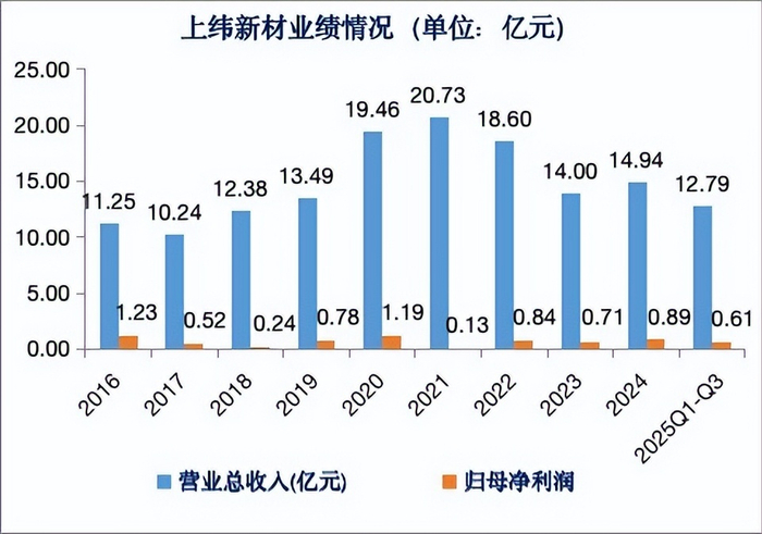 数据显示,前三季度上纬新材实现总营收12.79亿元,同比增长16.60%;归母净利润0.61亿元,同比下滑6.92%;扣非归母净利润0.55亿元,同比下降8.48%。