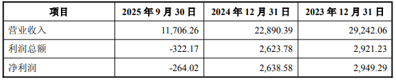 业绩来看,标的公司2024年营收同比下降21.72%,净利同比下降10.54%,2025年前三季度净利亏损。2023年度、2024年度、2025年前三季度,标的公司营业收入分别为29,242.06万元、22,890.39万元、11,706.26万元,净利润分别为2,949.29万元、2,638.58万元、-264.02万元。
