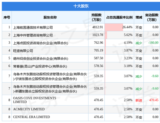 7月11日新致软件发布公告《688590:关于持股5%以上股东权益变动的提示性公告》,其股东青岛常春藤创业投资中心(有限合伙)于2022年6月21日至2022年7月10日间合计减持124.66万股,占公司目前总股本的0.6849%,变动期间该股股价下跌3.31%,截止7月8日收盘报14.02元。