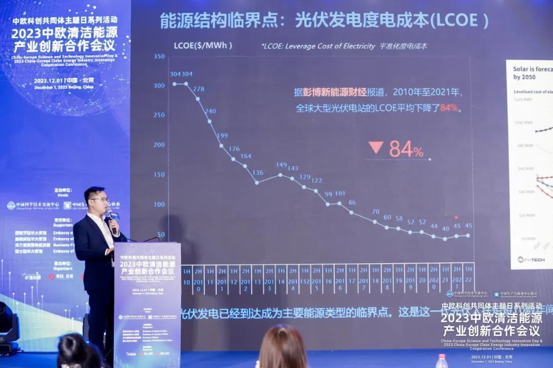 12月1日,2023中欧清洁能源产业创新合作会议于北京召开。本次会议以促进中欧清洁能源科技交流与合作为宗旨,邀请了中欧清洁能源领域企业代表、欧洲多国驻华使领馆大使或参赞、清洁能源领域知名专家学者等参会,共同探讨与分享中欧清洁能源先进科技和优秀合作案例。天合光能受邀出席此次论坛,发表了《天合光能210R黄金尺寸价值引领,共建组件标准化生态》的主题演讲,解析光伏行业的前沿技术和设计趋势,并分享了天合光能助力欧洲企业实现净零碳目标的优秀案例。