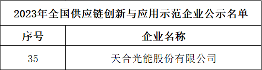 在首届链博会举行之际,商务部、工业和信息化部、生态环境部、农业农村部、人民银行、市场监管总局、国家金融监督管理总局、中国物流与采购联合会8单位公示“2023年全国供应链创新与应用示范企业”名单,天合光能成功入选。天合光能继今年3月荣获工信部“国家绿色供应链”后,再添“国字号”荣誉,成为光伏行业首家同时拥有国家“创新”及“绿色”供应链称号的企业。