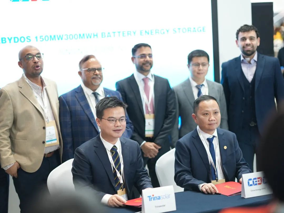 前不久,在埃及总理见证下,天合光能与AMEA Power和中国能源建设集团浙江火电建设有限公司达成战略合作。本次展会上,天合光能与AMEA Power和浙江火电举行签约仪式,将共同建设位于埃及南部地区的Abydos储能项目,成为展会焦点。天合光能将为埃及地区的Abydos光伏项目提供300MWh新一代柔性储能电池舱Elementa金刚2。这一光伏项目是非洲规模最大的光伏项目,也是埃及首个大型地面电站光储项目。此举进一步彰显了天合光能在推动中东和北非地区可再生能源发展的重要作用。