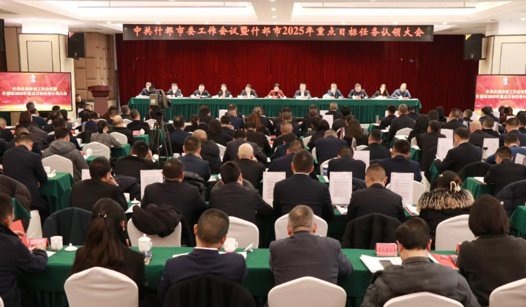 2月14日下午,什邡市委工作会暨全市2025年重点目标任务认领大会召开,什邡市委书记晏世莹出席会议并讲话。什邡市委副书记、市长叶科主持会议,市人大常委会主任简鸿彬,市政协主席黄剑,市委副书记万霞出席会议,天合光能受邀参加此次会议。