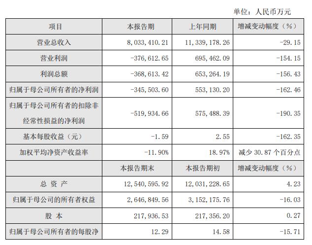 天合光能(688599.SH)2024年度业绩快报公告显示,天合光能2024年营业总收入为803.34亿元,同比下滑29.15%;归母净利润为-34.55亿元,同比下滑162.46%;扣非净利润为-51.99亿元,同比下滑190.35%。
