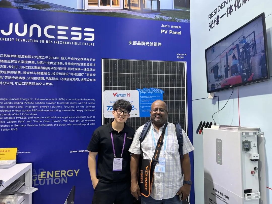 作为中国分布式能源领域的领军者,天合光能始终以客户为中心,持续构建开放、协同的分布式能源生态圈。此次参展的中国区分布式生态伙伴JUNCESS,也是天合光能签约巴基斯坦的特约渠道商,通过资源共享与能力互补,生态伙伴们已在全球范围内打造了无数个标杆项目,为工商业、乡村振兴、智慧城市等场景提供低碳化能源解决方案。