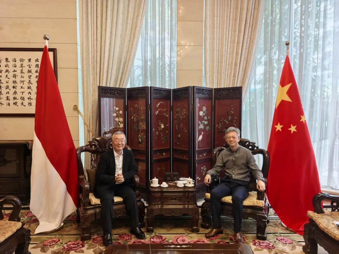 天合光能董事长特别助理杨晓忠在开幕典礼前,专程前往中国驻印度尼西亚大使馆拜访王鲁彤大使阁下,汇报天合光能印尼合资工厂TMAI建设情况及发展规划。王鲁彤大使表示预祝开幕典礼取得圆满成功。