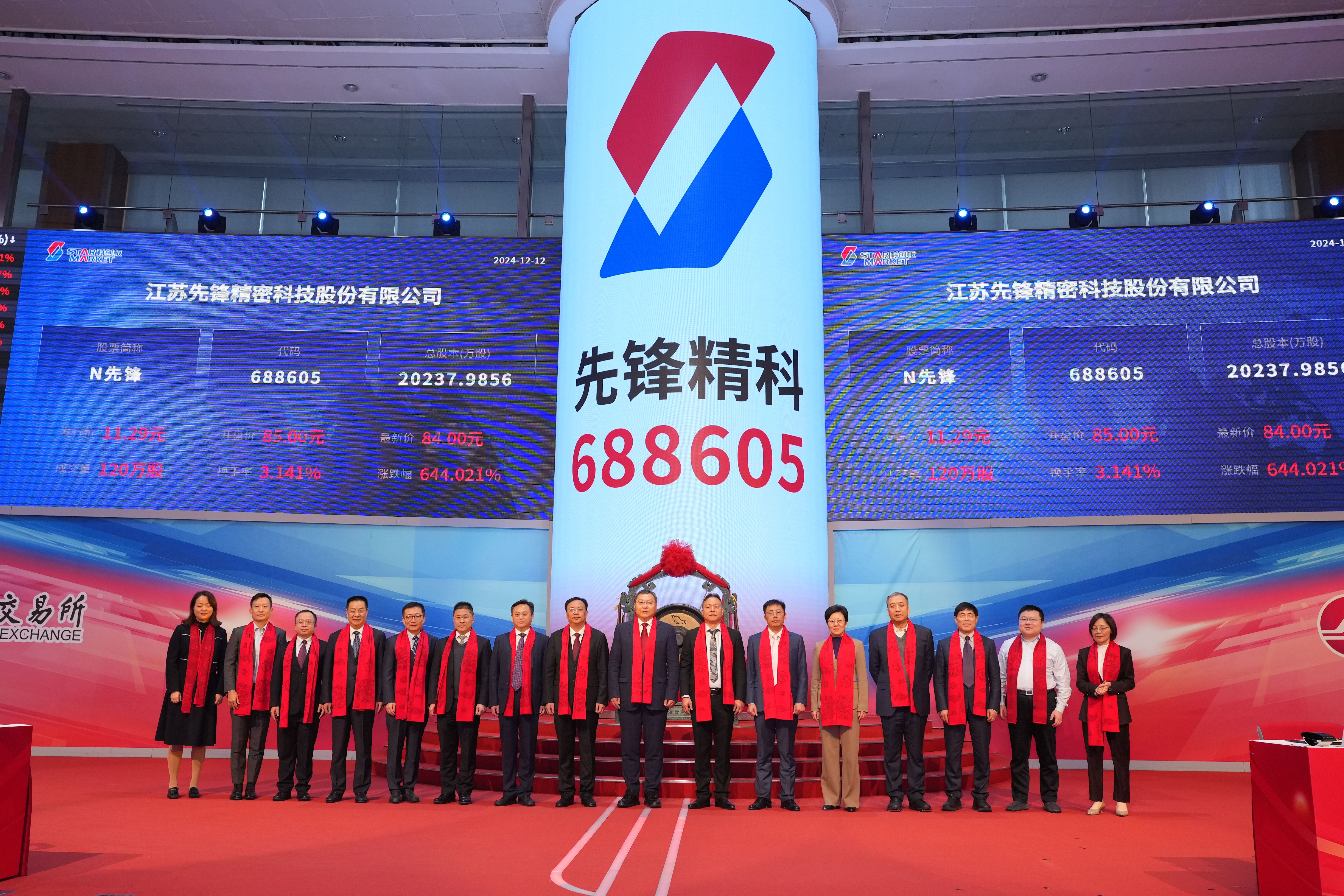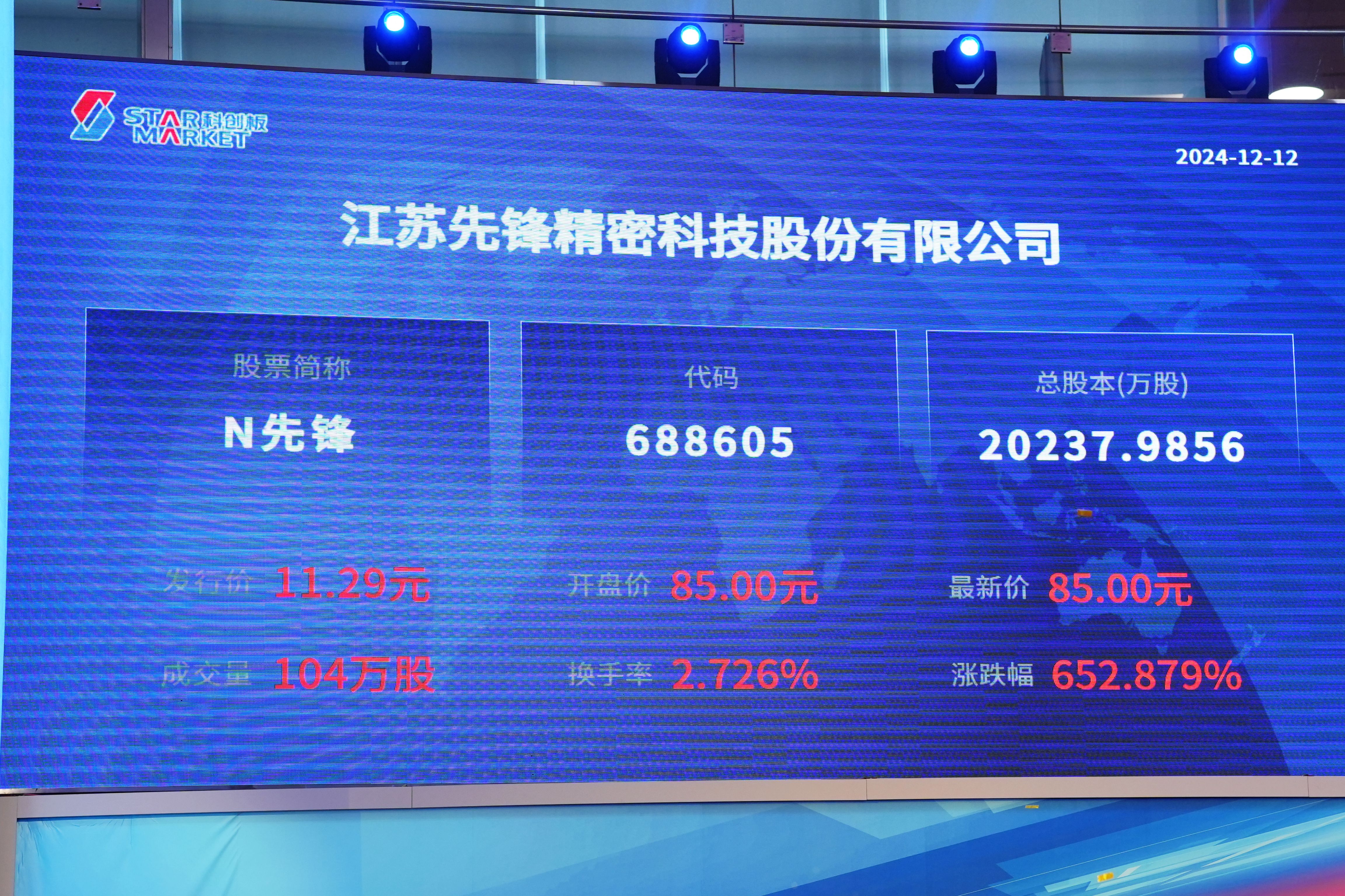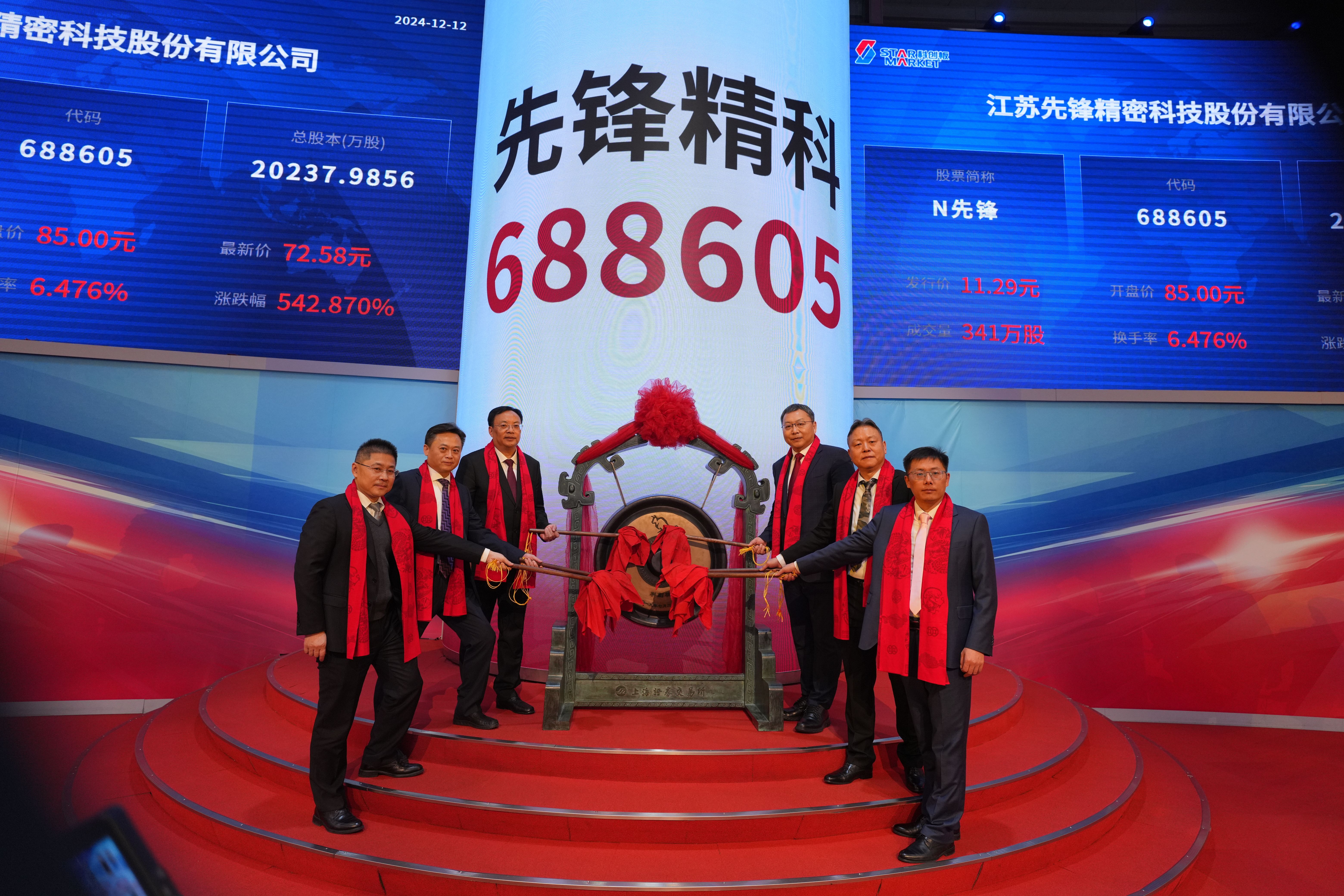 12月12日,江苏先锋精密科技股份有限公司(证券简称:先锋精科)在上交所科创板敲锣上市。上市当日,公司股价大幅高开,盘中一度涨超652%。