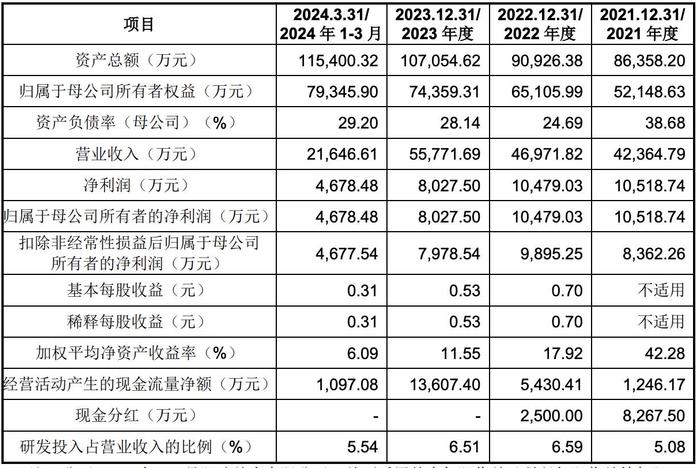 2021年、2022年、2023年度和2024年上半年,先锋精科的营收分别约4.24亿元、4.70亿元、5.58亿元和2.16亿元,净利润分别约1.05亿元、1.05亿元、8027.50万元和4678.48万元,扣非后净利润分别约8362.26万元、9895.25万元、7978.54万元和4677.54万元。