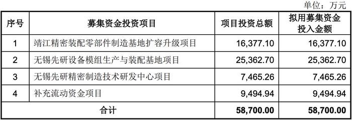 据先锋精科提交的招股书(上会稿),该公司下调募资金额规模至5.87亿元,而今则进一步缩减至5.12亿元,相对此前减少约2亿元。其中,先锋精科拟用于补充流动资金项目的金额由早前的约2.08亿元下调为9494.94万元。