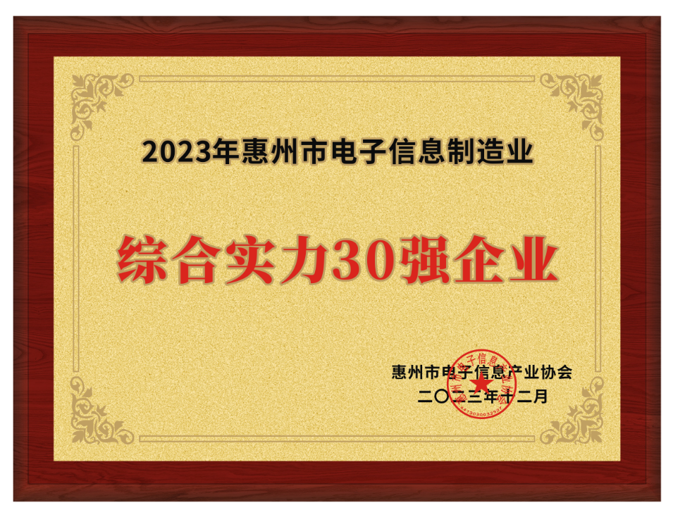 九联科技深耕通信电子行业二十多年,是惠州市首家科创板上市企业(股票代码:688609),此次入选2023年惠州市电子信息制造业综合实力30强,这代表着业界对公司的自主创新、推动行业高质量发展的肯定和支持。