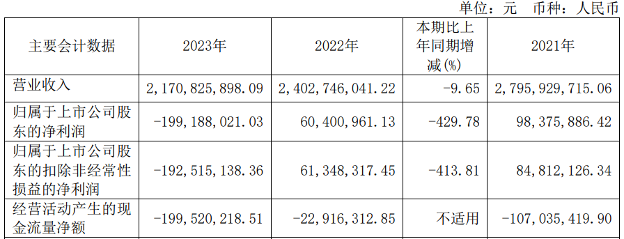 2023年年报显示,九联科技实现营业收入21.71亿元,同比下降9.65%;归属于上市公司股东的净利润-1.99亿元,上年同期为6040.10万元;归属于上市公司股东的扣非净利润-1.93亿元,上年同期为6134.83万元;经营活动产生的现金流量净额为-2.00亿元,上年同期为-2291.63万元。