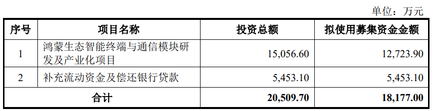 九联科技3月13日披露《2025年以简易程序向特定对象发行股票证券募集说明书(申报稿)》显示,公司本次发行募集资金总额不超过人民币18,177.00万元,用于鸿蒙生态智能终端与通信模块研发及产业化项目、补充流动资金及偿还银行贷款。
