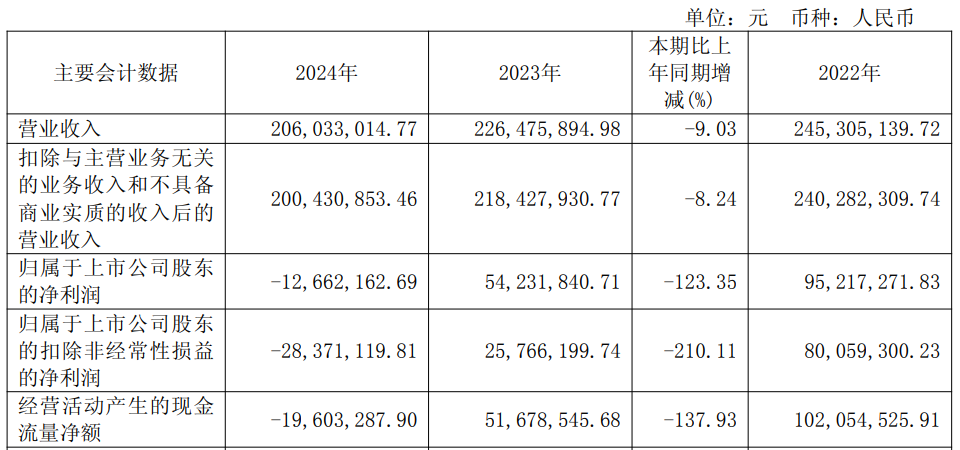 2024年,奥精医疗实现营业总收入2.06亿元,同比下降9.03%;归属于上市公司股东的净利润为-1266.22万元,上年同期为5423.18万元;归属于上市公司股东的扣非净利润为-2837.11万元,上年同期为2576.62万元;经营活动产生的现金流量净额为-1960.33万元,上年同期为5167.85万元