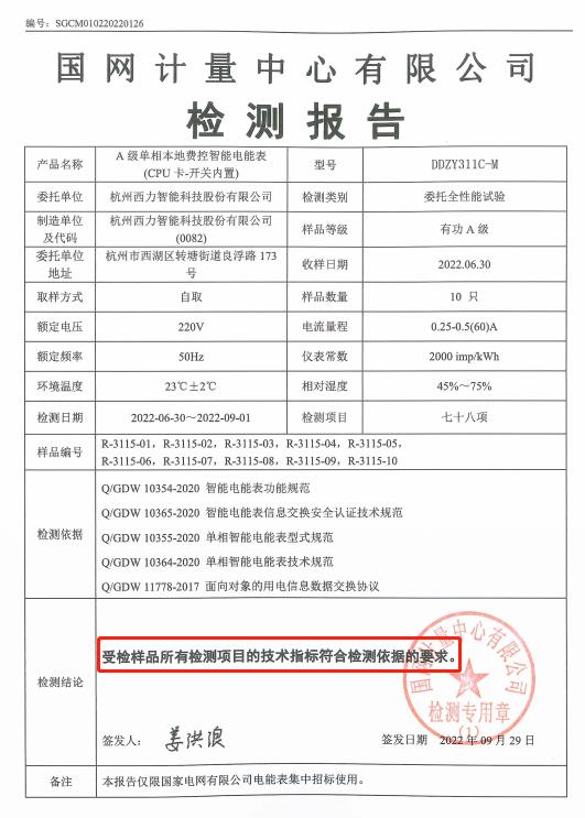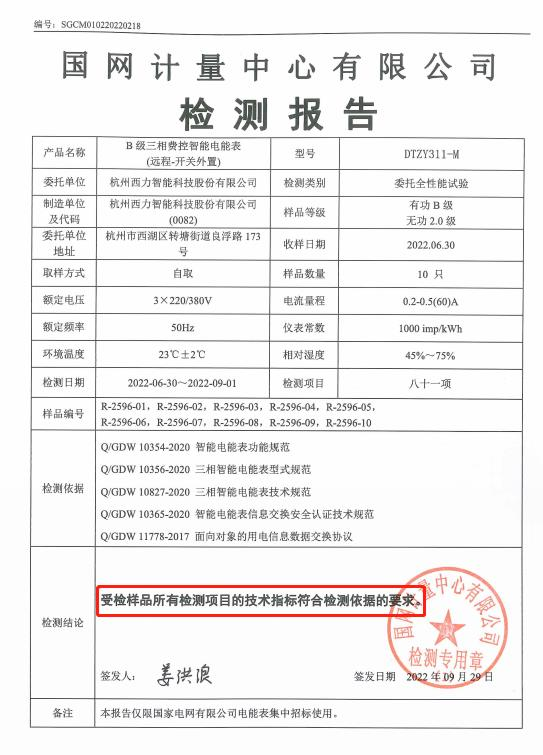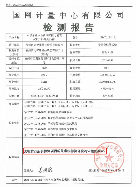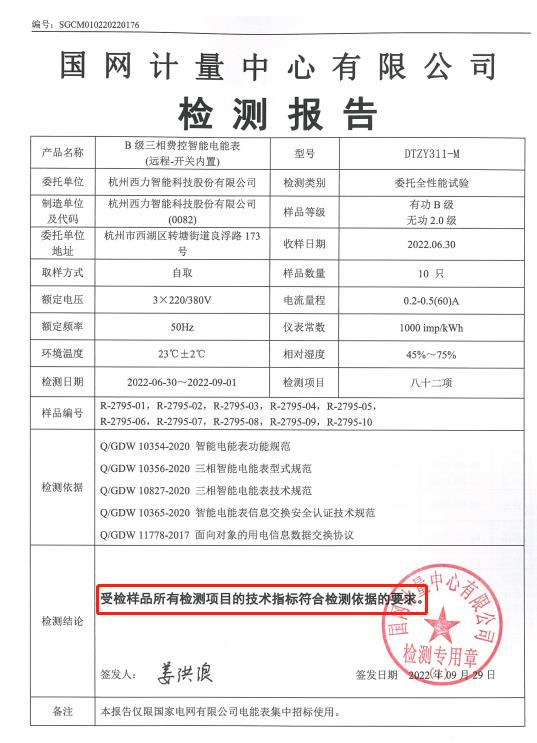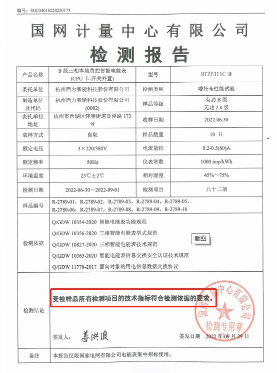 近日,公司多款产品取得国网计量中心合格检测报告,其中的B级三相费控智能电能表(远程-开关内置)、B级三相费控智能电能表(远程-开关外置)、B级三相本地费控智能电能表(CPU卡-开关内置)、B级三相本地费控智能电能表(CPU卡-开关外置)四款产品更是取得了满分100分的全性能检测得分。