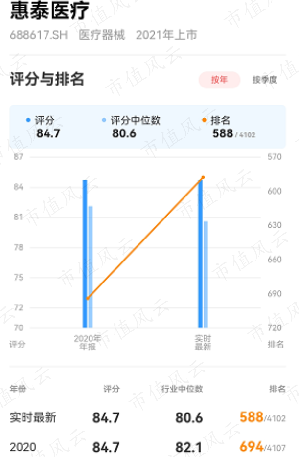 今年1月刚登录科创板的惠泰医疗(688617.SH)可谓是一枝独秀,年涨幅高达378%。