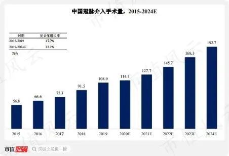 2024年,国内的冠脉介入手术量预计将达到192万例,年复合增长率12%。