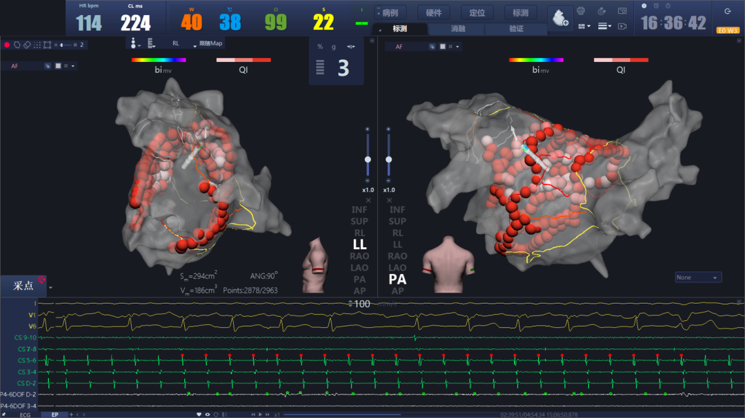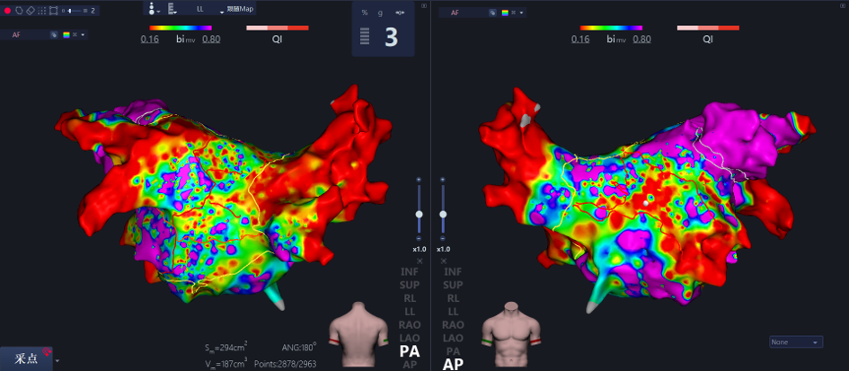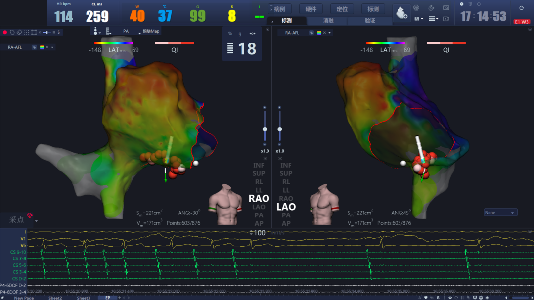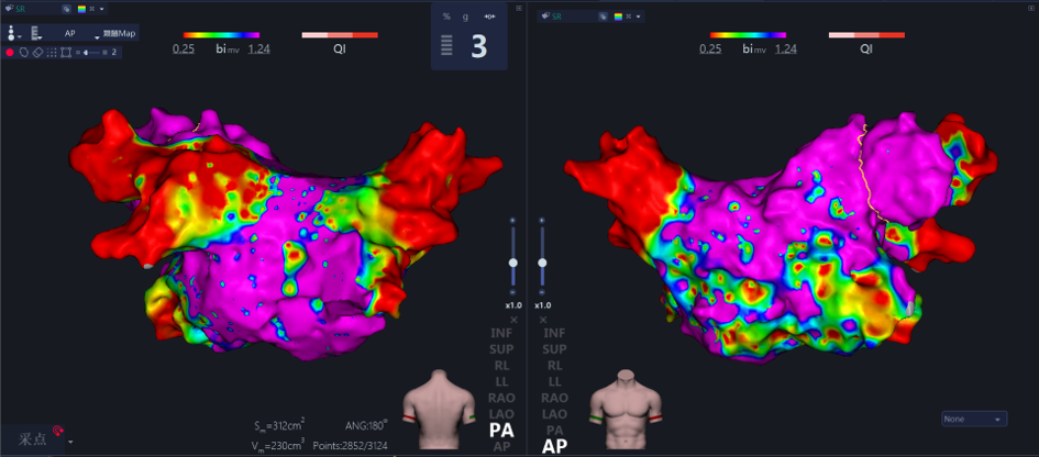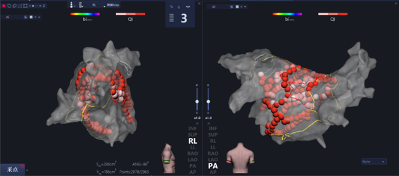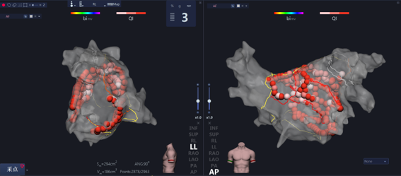 目前在持续性房颤治疗领域,主流的术式是采用高密度标测软件结合压力监测消融导管,进行基于双侧肺静脉大环隔离,结合线型消融的治疗策略。在持续性房颤导管消融领域,惠泰作为国产电生理的领先企业,基于前期大量对于持续房颤的机制研究,研发基础数据积累,整合压力消融导管与对系统方法的技术储备,本着“国内首创,敢于亮剑”的精神,惠泰医疗成为国产首家完成持续性房颤注册试验的公司。惠泰医疗的持续性房颤临床试验旨在验证了使用压力感应技术和量化消融方法在治疗中的有效性和安全性,并且配合高密度低电压标测方法,为持续性房颤导管消融患者提供了安全而高效且直观的解决方案。(如下图所示)