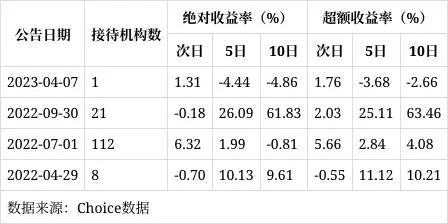 除当日外,惠泰医疗近一年共接待127家机构142次调研,历史回测情况如下表所示: