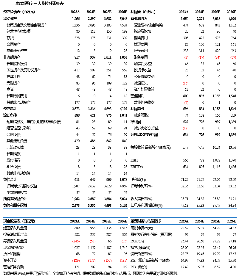 投资要点事件:24H1营收实现10.01亿元(+27%,同比,下同),归母净利润3.43亿元(+33%),扣非归母净利润3.28亿元(+35%)。24Q2营收实现5.46亿元(+24.5%),归母净利润2.02亿元(+30.8%),扣非归母净利润1.91亿元(+25.5%)。24Q2利润超我们预期。上半年冠脉、外周业务收入占比提升,三维电生理手术量增长明显:2024年上半年分板块来看,冠脉通路类收入5.03亿,占收入50.27%;电生理收入2.23亿,占收入22.31%,公司三维冷盐水消融导管在2023年度实现了手术量当年超过10,000例,在2024年上半年完成约7,500例手术,在非房颤治疗领域充分证实了产品的安全性和有效性,得到市场的广泛认可;外周介入类收入1.75亿,占收入17.50%;OEM收入0.74亿,占收入7.35%;非血管介入治疗类耗材收入0.16亿,占收入1.63%。净利率和毛利率同比提升,经营趋势向好:24Q1毛利率72.01%(+1.34pct,同比,下同),净利率30.28%(+2.03pct),24Q2毛利率73.36%(+0.77pct),净利率36.69%(+1.59pct)。24H1销售费用1.77亿元(+17.55%),销售费用率17.70%(-1.43pct);管理费用0.46亿元(+30.43%),管理费用率4.62%(+0.12pct);研发费用1.34亿元(+22.92%),研发费用率13.38%(-0.44pct)。