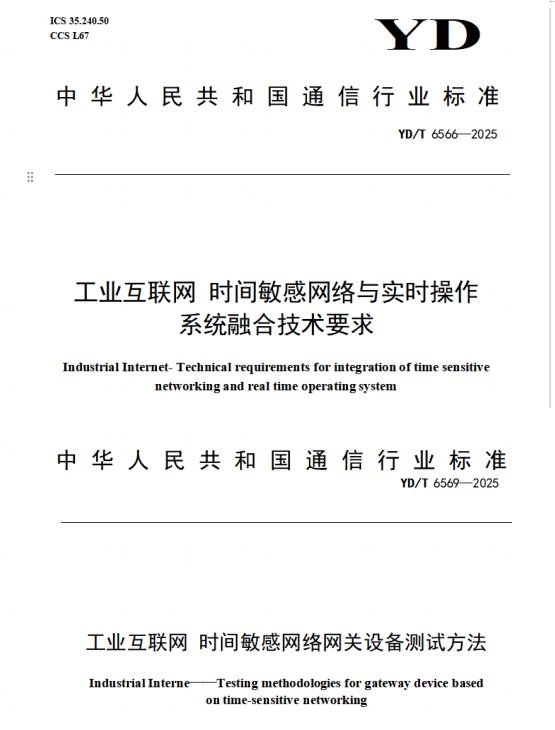2.《YD/T 6566-2025 工业互联网时间敏感网络与实时操作系统融合技术要求》