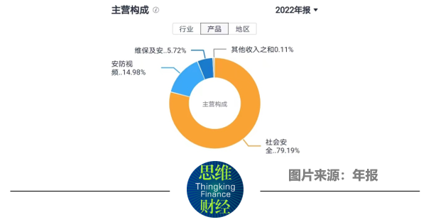 年报显示,罗普特2022年的主营收入为1.69亿元。其中,社会安全系统解决方案的营收为1.34亿元,在主营收入中的占比高达79.19%;安防视频监控产品销售收入为2535万元,在主营收入中的占比为14.98%;维保及安防教育服务等项目的营收不足千万元,占比不到6%。