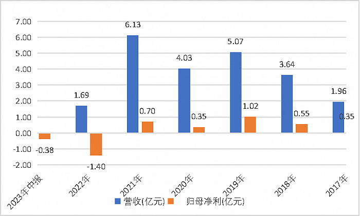 2022年公司营收仅剩1.69亿元,归母净利亏损1.4亿元。