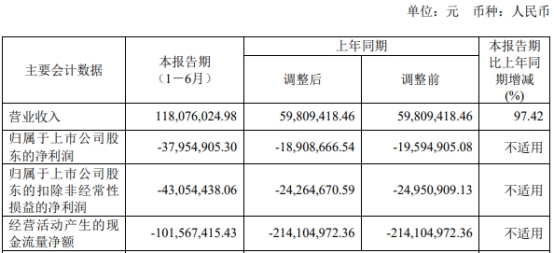 今年上半年,罗普特营业收入为1.18亿元,同比增长97.42%;归属于上市公司股东的净利润-3795.49万元,上年同期为-1890.87万元;归属于上市公司股东的扣除非经常性损益的净利润-4305.44万元,上年同期为-2426.47万元;经营活动产生的现金流量净额-1.02亿元,上年同期为-2.14亿元。