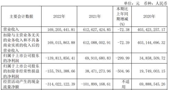 2022年度,罗普特实现营业收入1.69亿元,同比减少72.38%;实现归属于母公司所有者的净利润-1.40亿元,上年同期为6991.07万元;实现归属于母公司所有者的扣除非经常性损益的净利润-1.56亿元,上年同期为3847.13万元;经营活动产生的现金流量净额-3.14亿元,上年同期为-1.02亿元。
